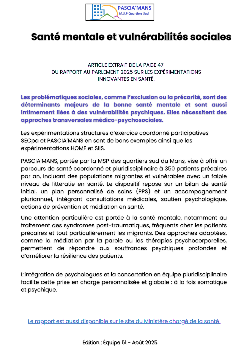 Le rapport est également disponible sur le site du Ministère chargé de la santé : (https://lnkd.in/eC_gN4Q8)Bravo à l’ensemble des équipes nationales de l’Article 51 pour leur engagement en faveur de solutions innovantes au service des publics les plus vulnérables.